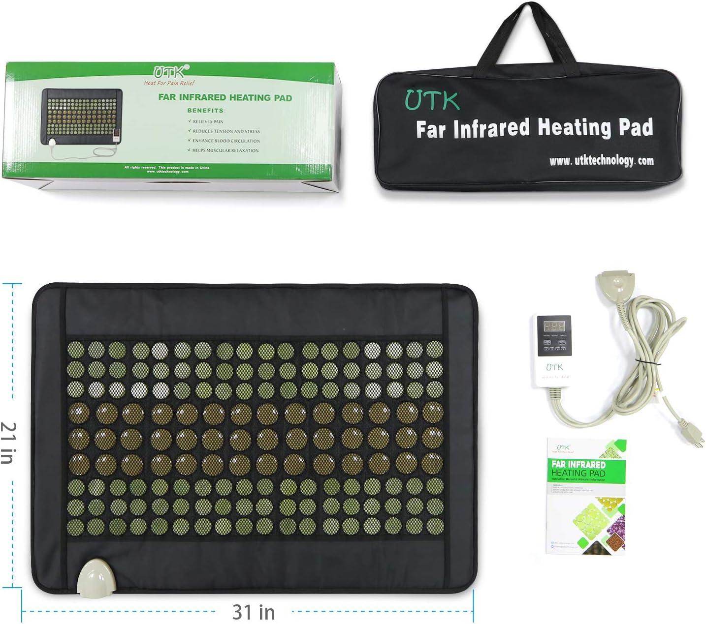 Utk Far Infrared Heating Pad For Back 21x31 Dense 108 Jade And 42 Tourmaline Stones Matrix 90 Watt Fast Heat Up Storage Bag Included Model Medium Pro